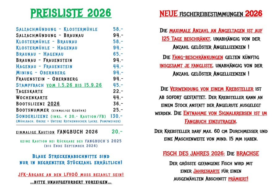 Für die SALZACH: ab Mittwoch 7.1.2026 --> 9:00 Uhr !
